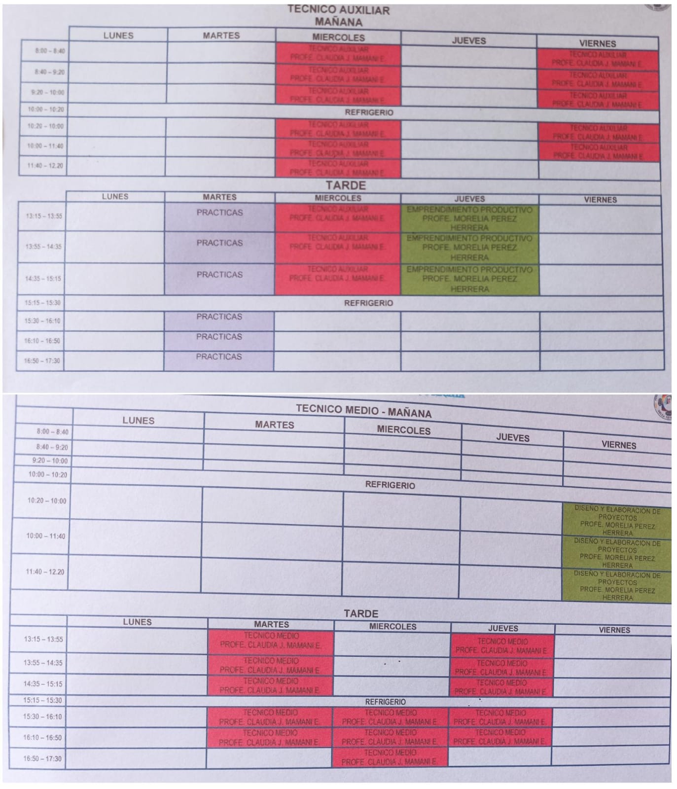 Nuestros horarios son combenientes ya que disponemos tiempo en la mañana y en la tarde en primer año